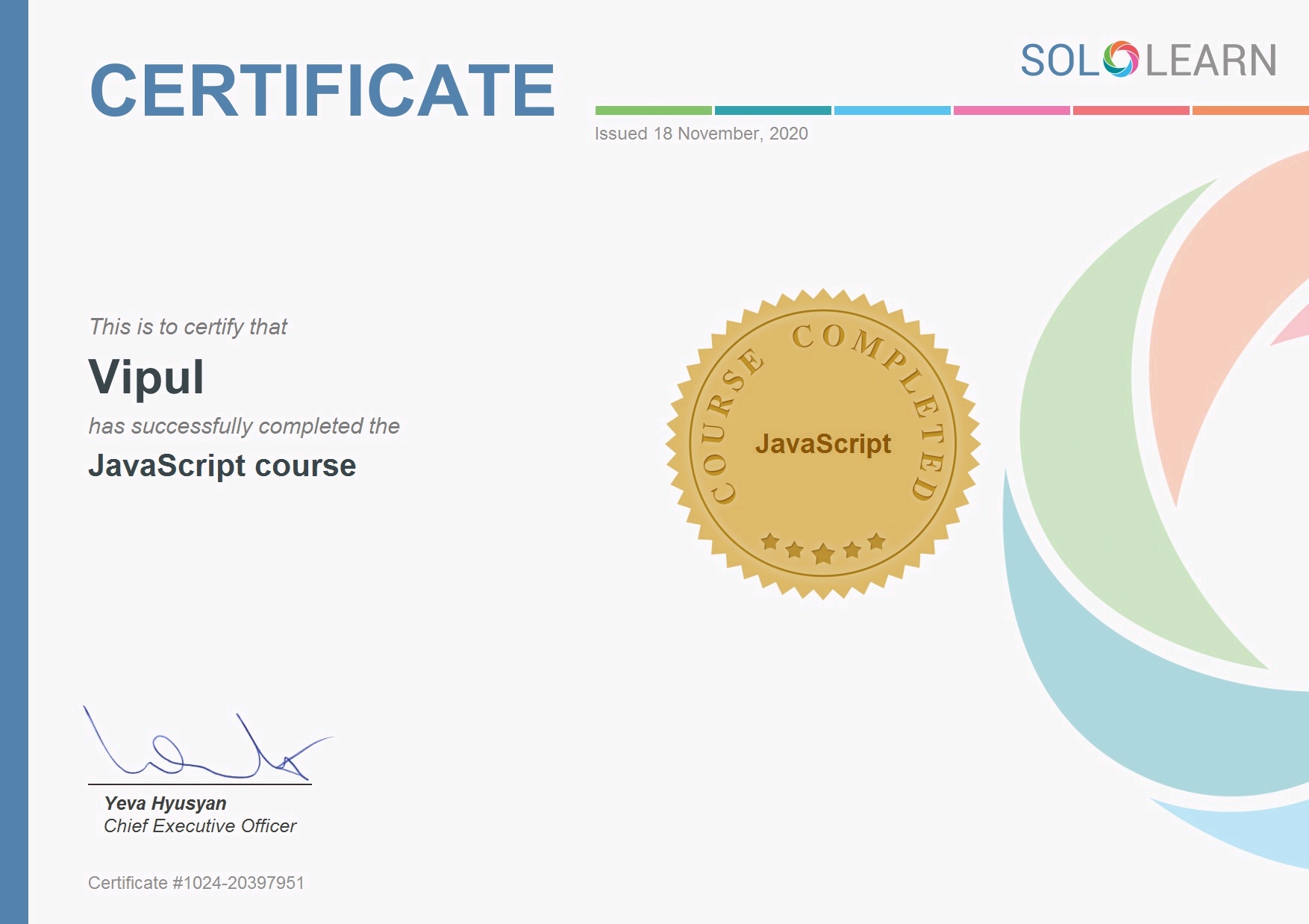 2. Solo-Learn JavaScript Certification. JS Certificate
